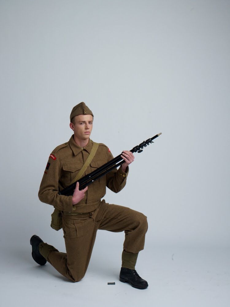 Check out the 'gun' which is a Manfrotto light stand. We had no gun on set and there fore had to work out something which would leave the models hands in the right position and the rifile could then be added in post (not by me or my team I hasten to add!)